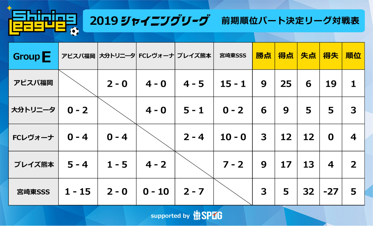 Group E:2019前期順位パート決定L:【公式】シャイニングリーグU-12