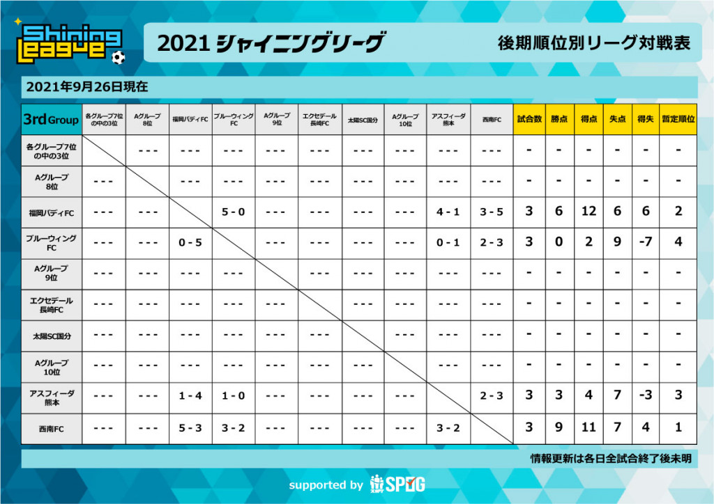 2021 後期順位別L:【公式】シャイニングリーグU-12